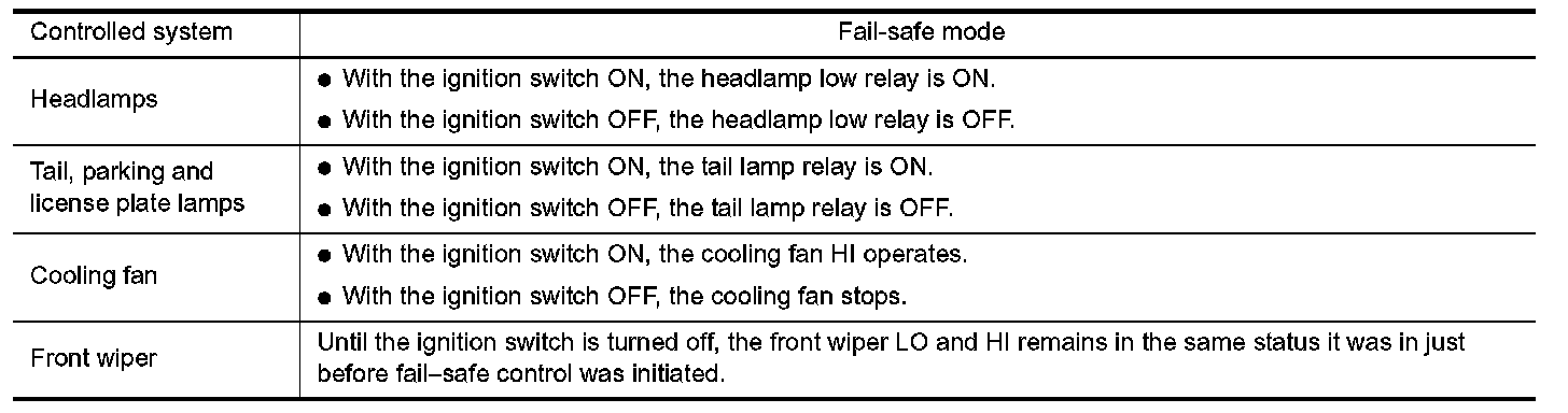 - Operation of control parts by IPDM E/R during fail-safe mode is as given: