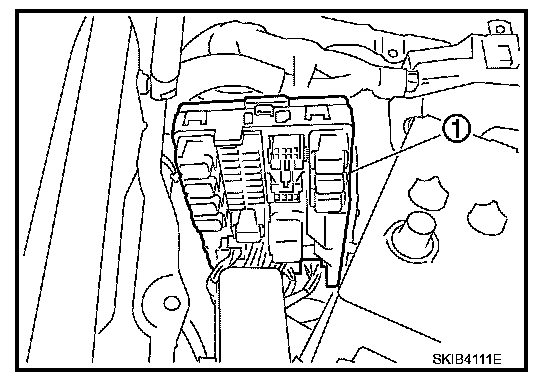 5. Remove harness connector from IPDM E/R (1) and remove IPDM E/R (1).