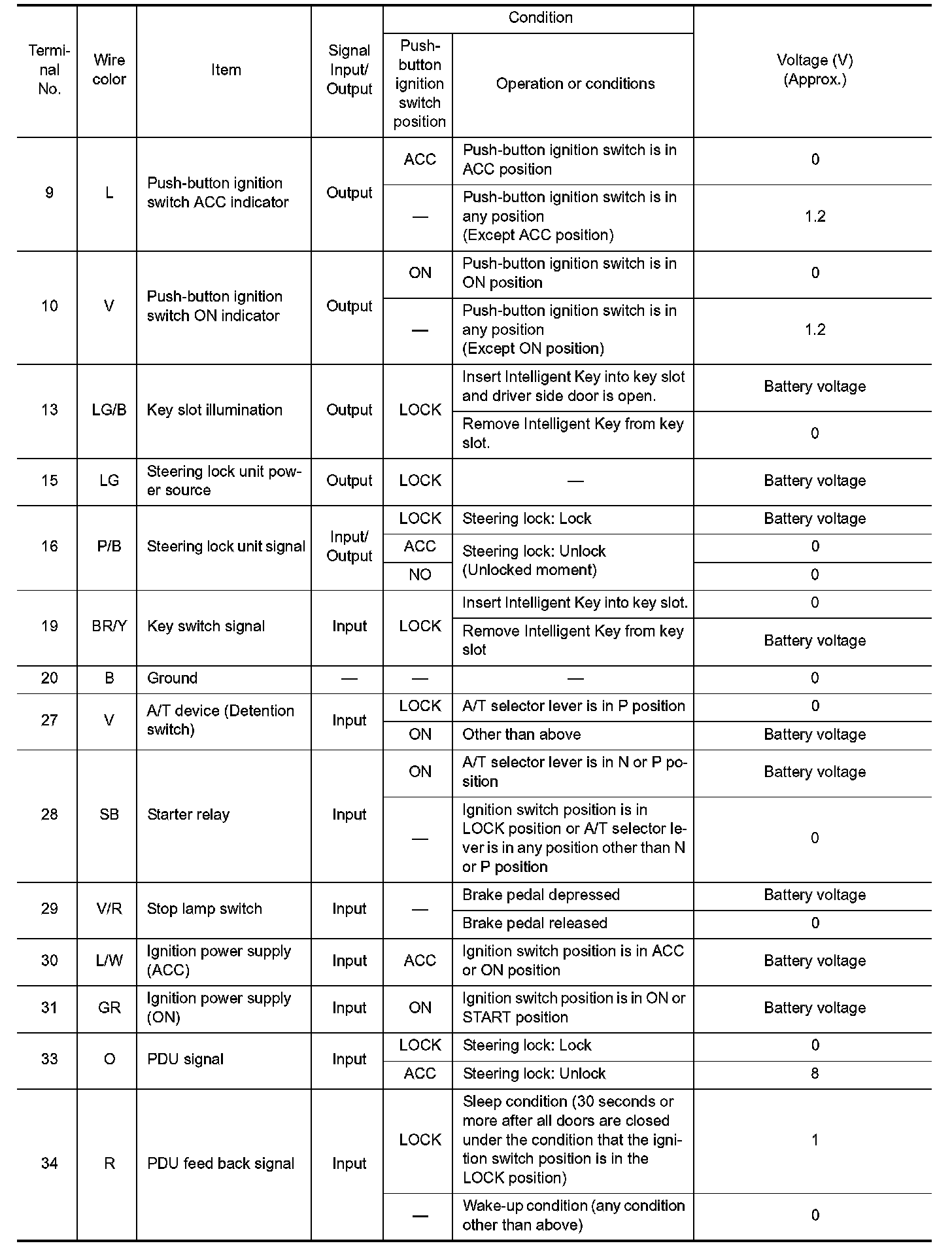 Terminal And Reference Value For Intelligent Key Unit (Part 2):