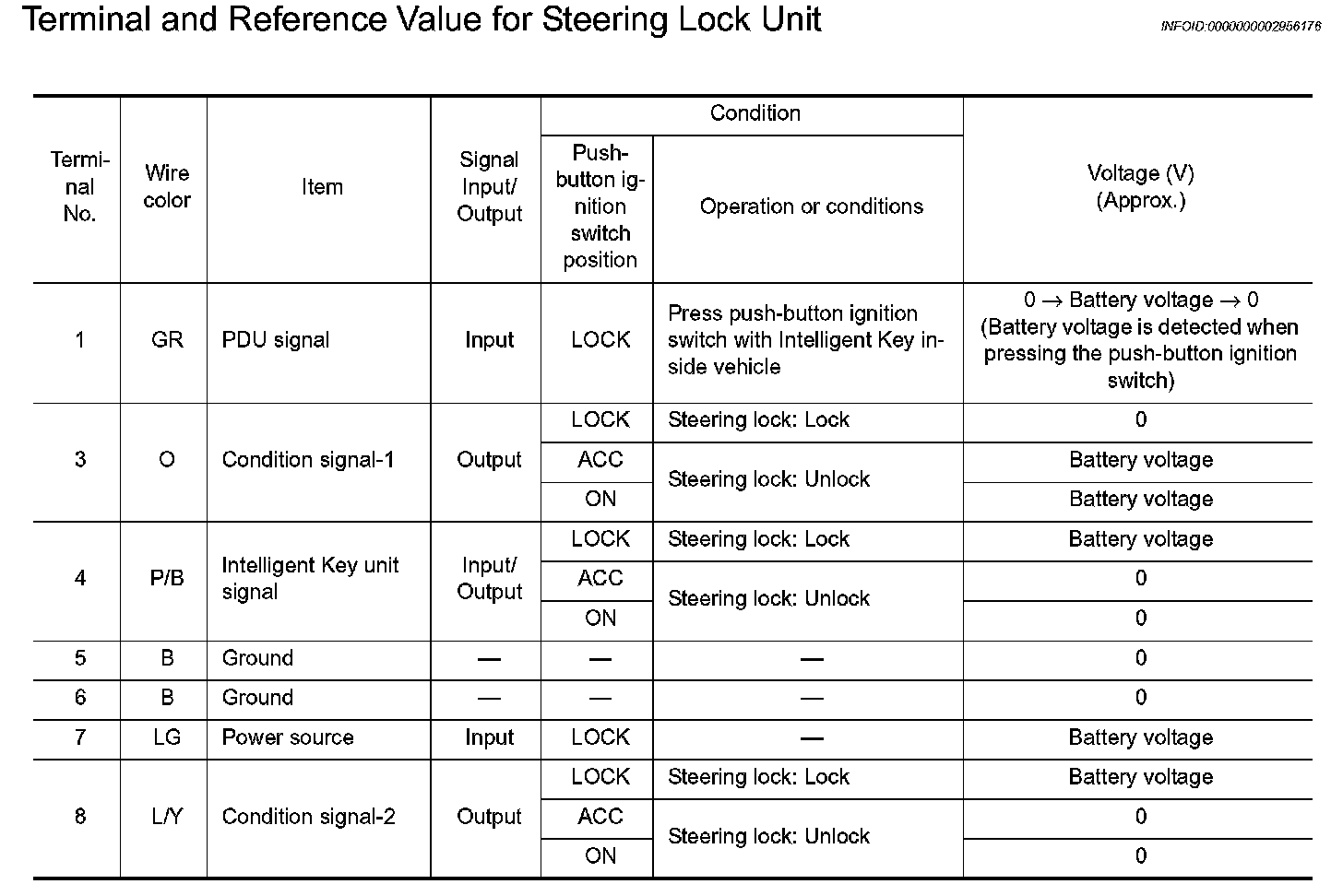Terminal And Reference Value For Steering Lock Unit: