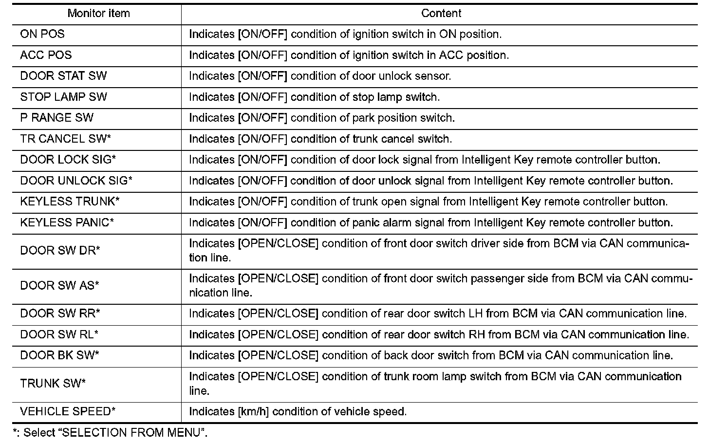 CONSULT-III Application Item