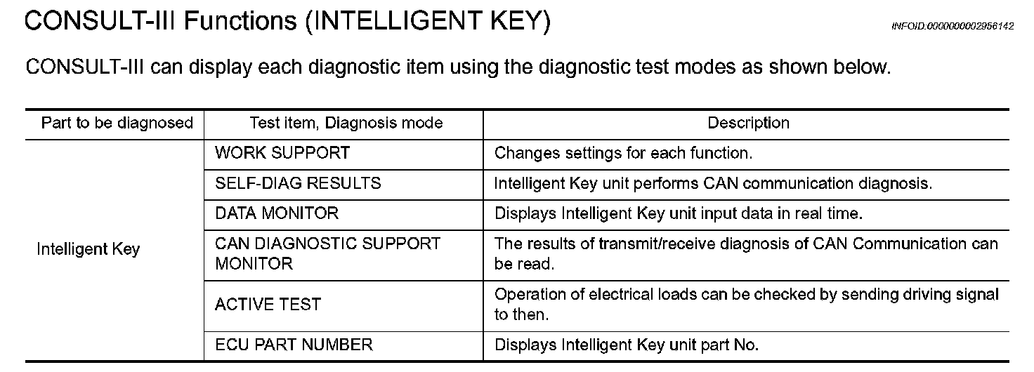 CONSULT-III Functions (Intelligent Key)
