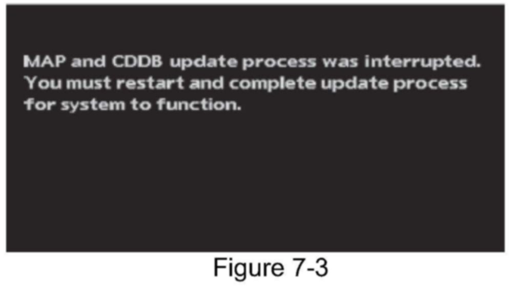 ^ If the fail-safe screen is displayed as shown in Figure 7-3, the map data upgrade failed.