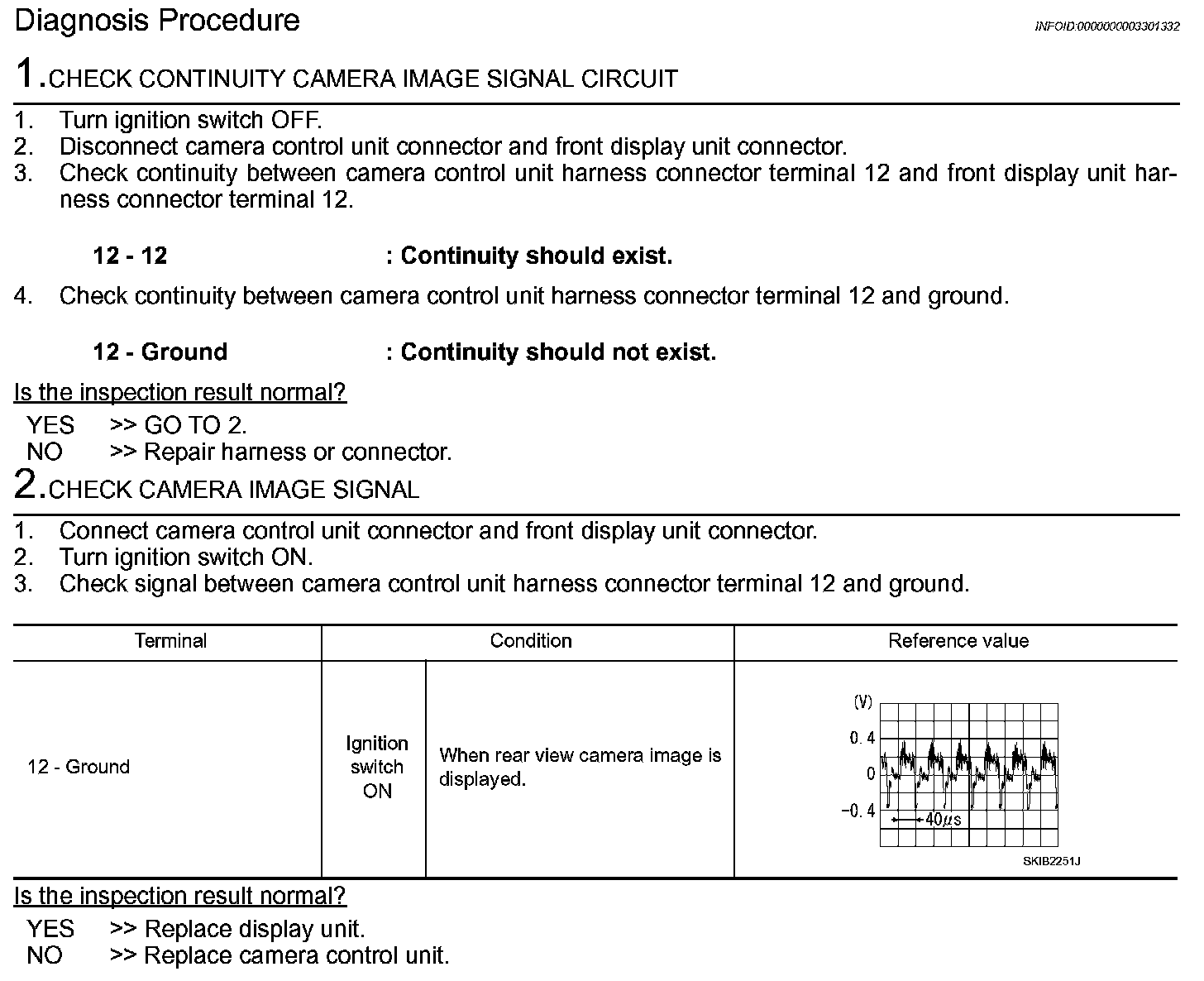 CAMERA IMAGE SIGNAL CIRCUIT (CAMERA CONTROL UNIT TO FRONT DISPLAY UNIT)Description