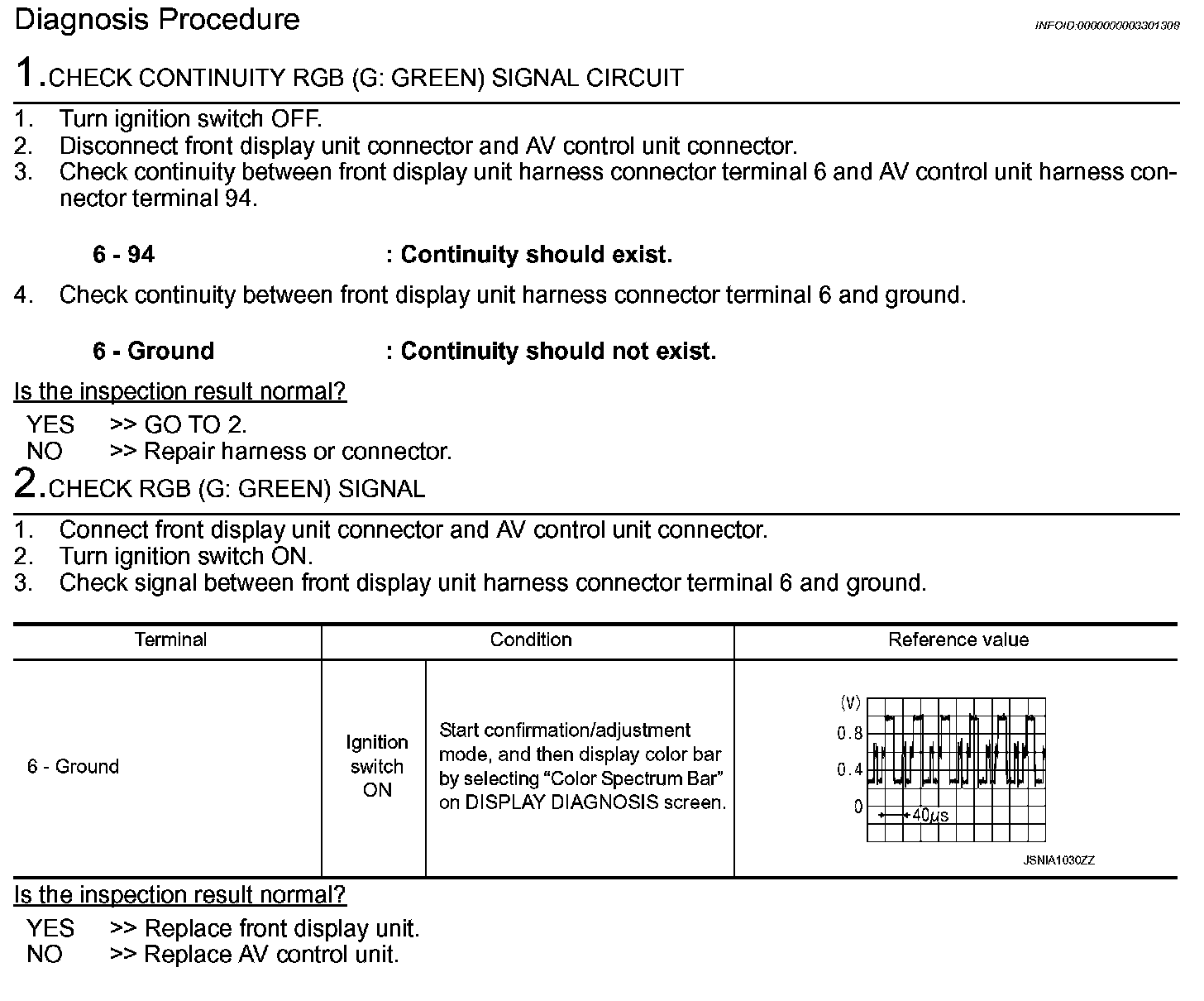 RGB (G: GREEN) SIGNAL CIRCUIT (AV CONTROL UNIT TO FRONT DISPLAY UNIT)Description