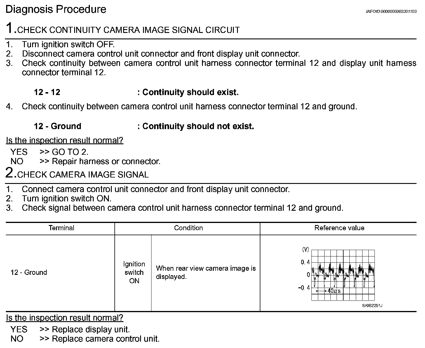 CAMERA IMAGE SIGNAL CIRCUIT (CAMERA CONTROL UNIT TO FRONT DISPLAY UNIT)Description