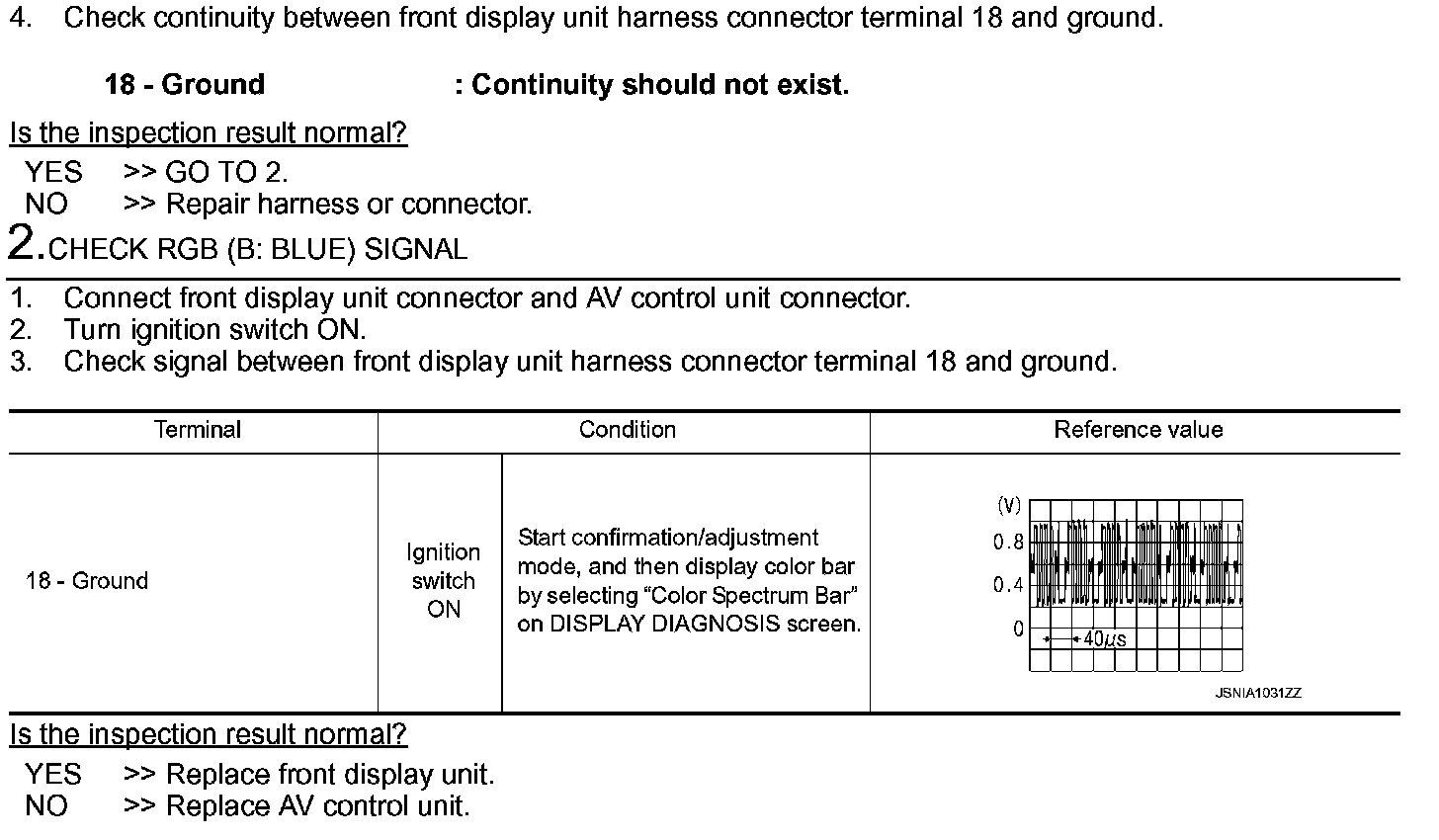 RGB (B: Blue) Signal Circuit (AV Control Unit to Front Display Unit)