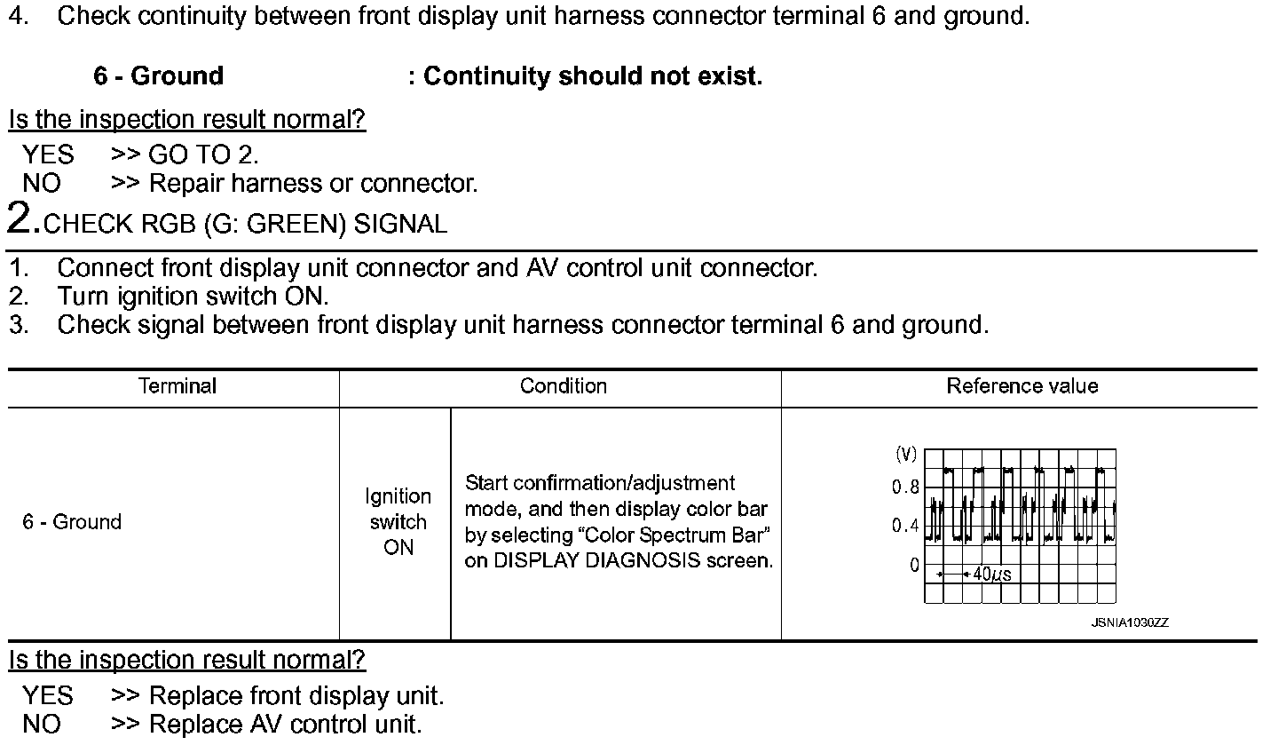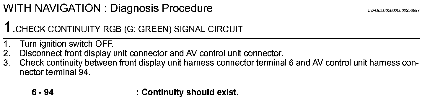 RGB (G: Green) Signal Circuit (AV Control Unit to Front Display Unit)