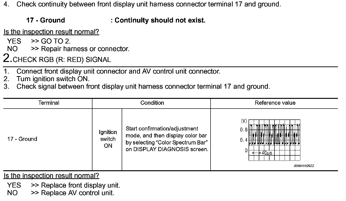 RGB (R: Red) Signal Circuit (AV Control Unit to Front Display Unit)