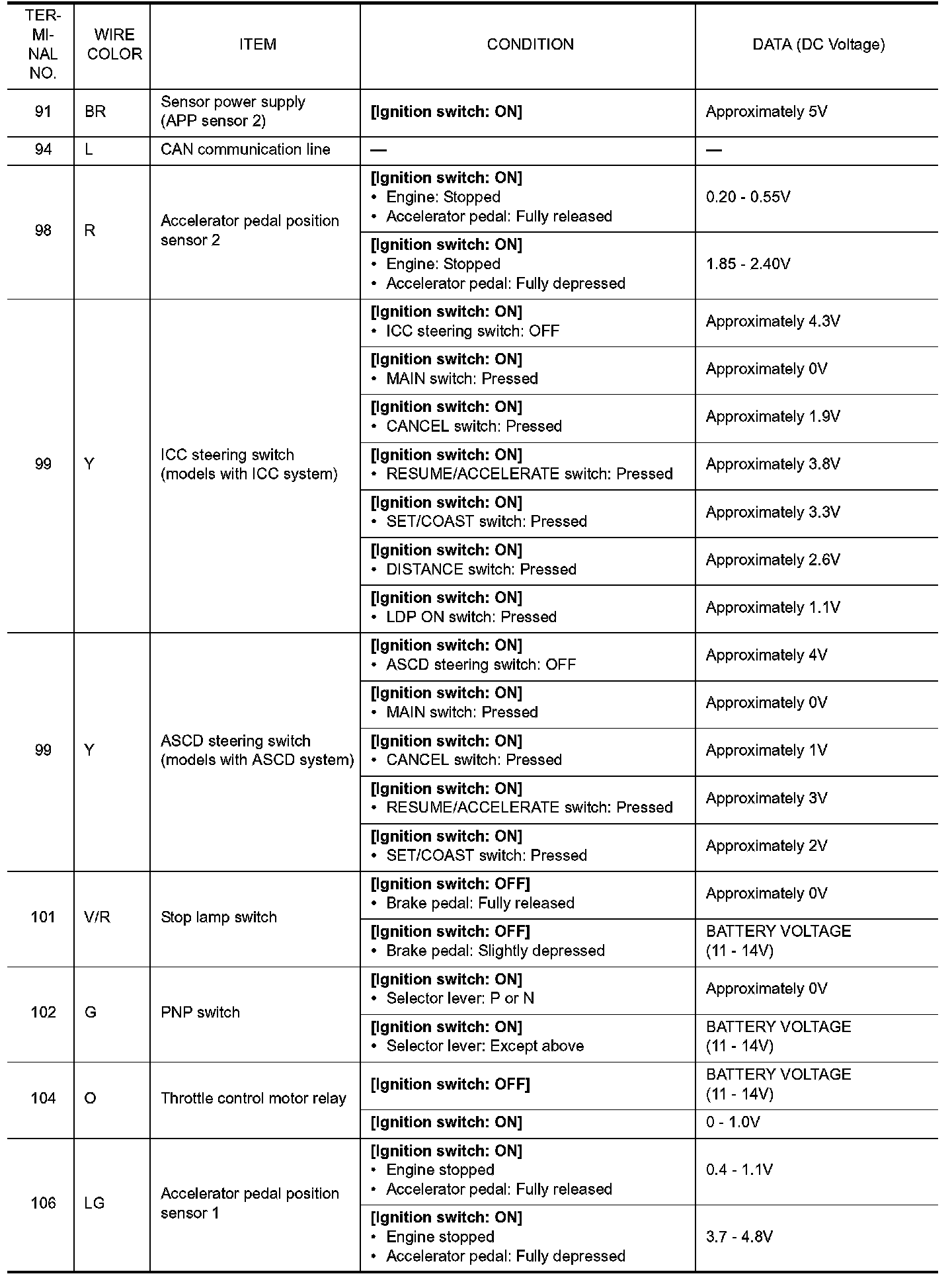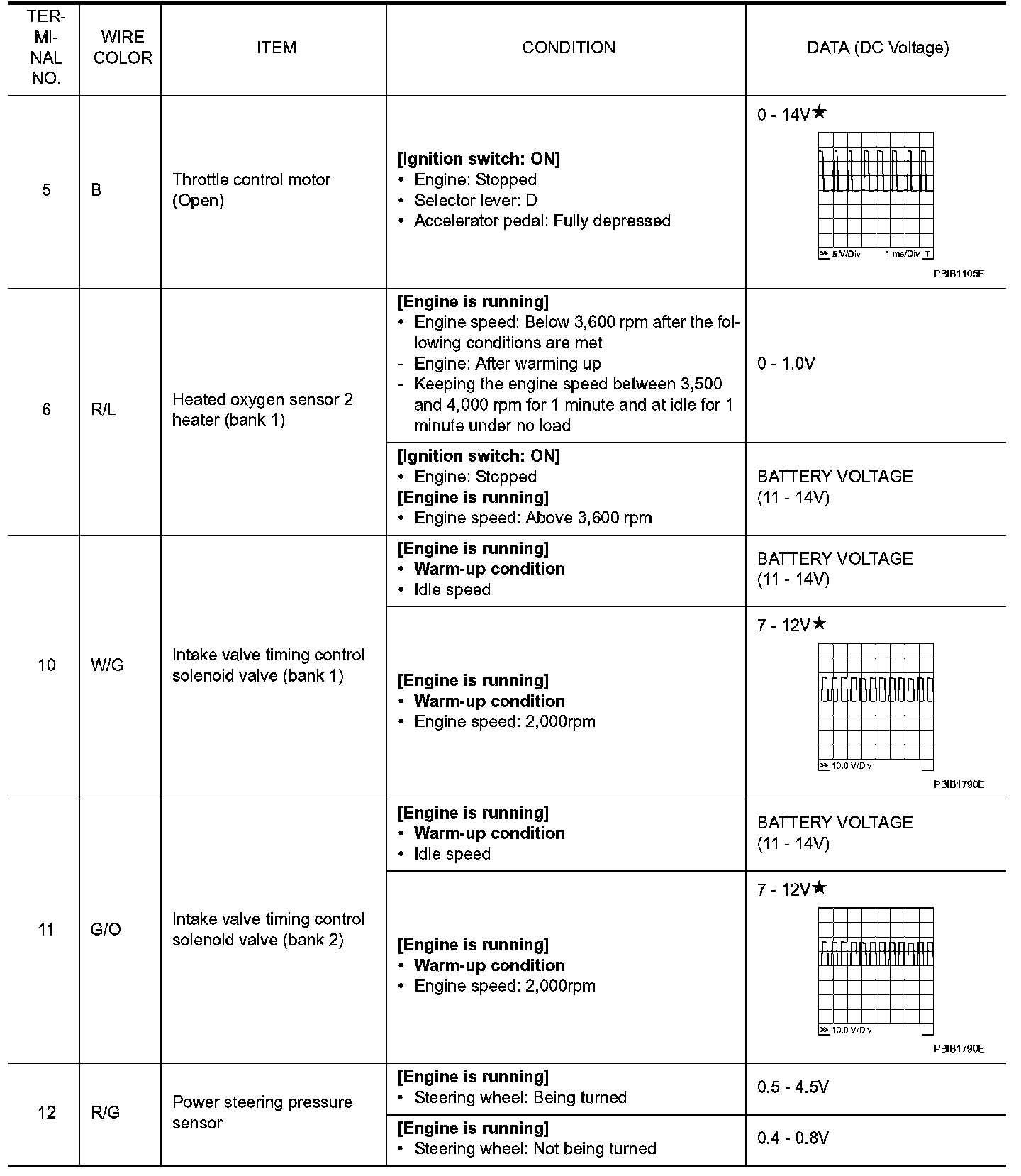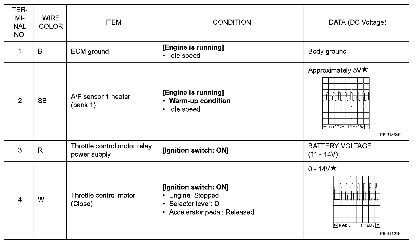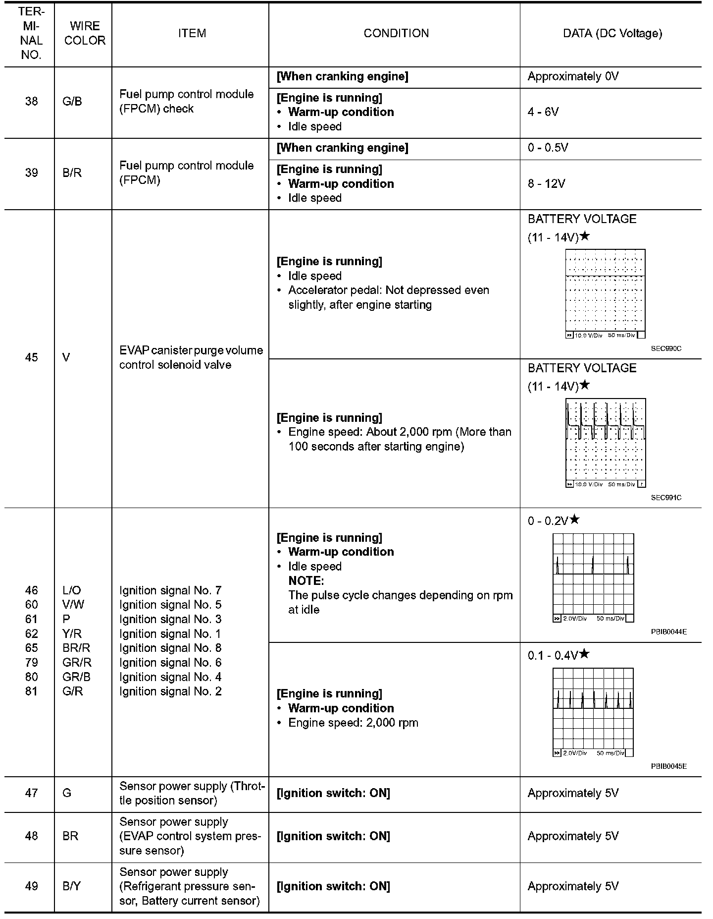 ECM Harness Connector Terminal LayoutECM Terminal and Reference Value