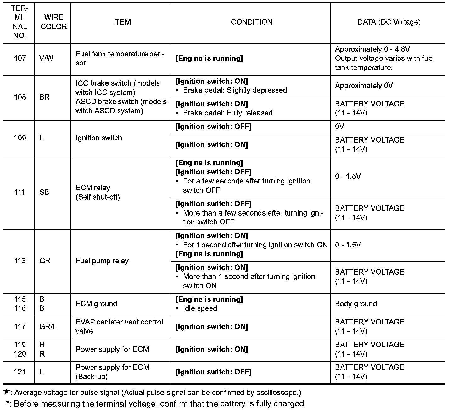 CAUTION: Do not use ECM ground terminals when measuring input/output voltage. Doing so may result in damage to the ECMs transistor. Use a ground other than ECM terminals, such as the ground.