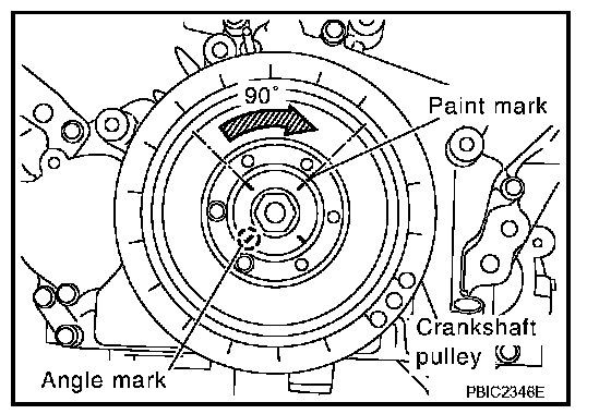 Put a paint mark on crankshaft pulley aligning with angle mark on crankshaft pulley bolt.