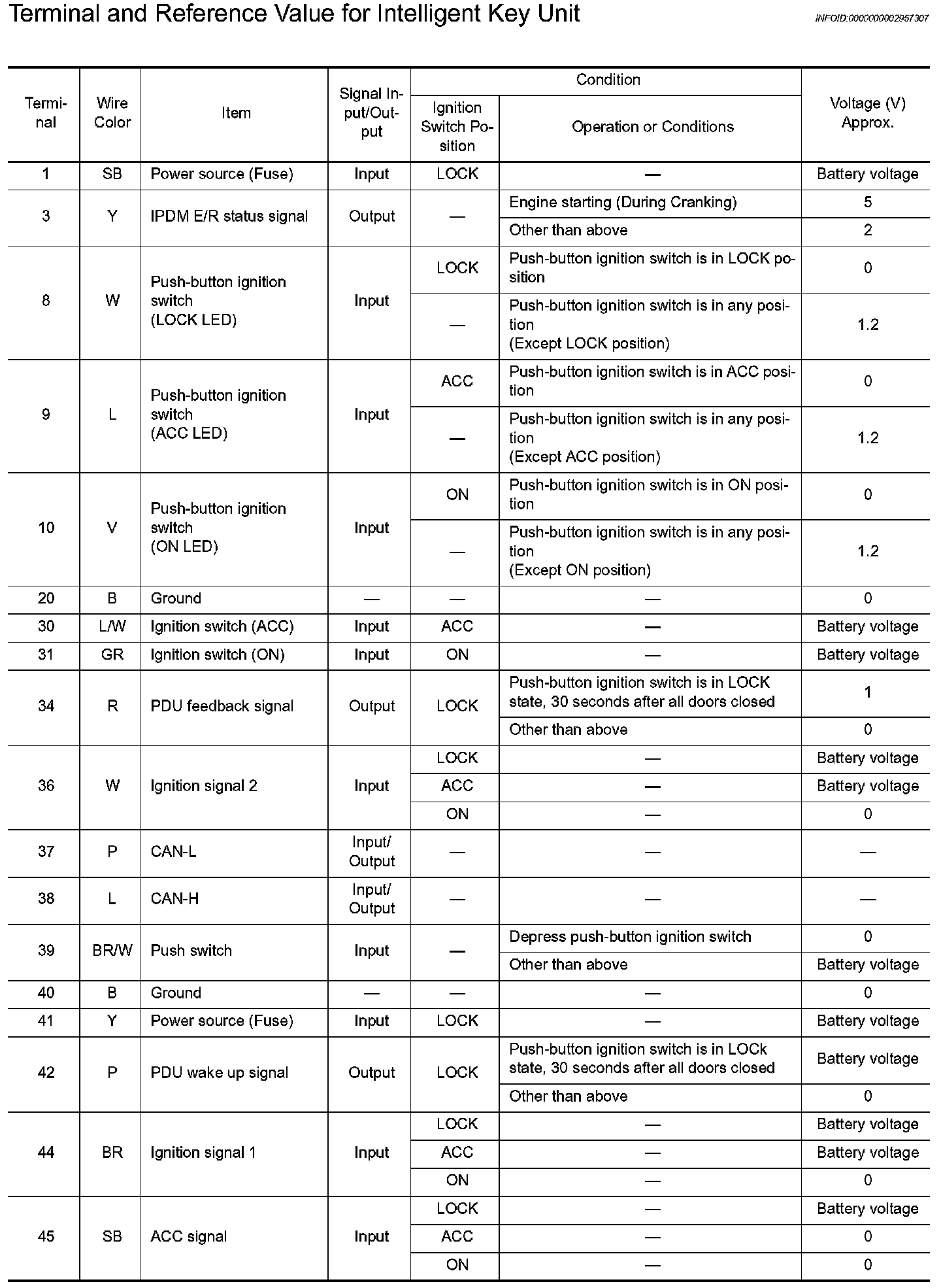 Terminal And Reference Value For Intelligent Key Unit (Part 1):