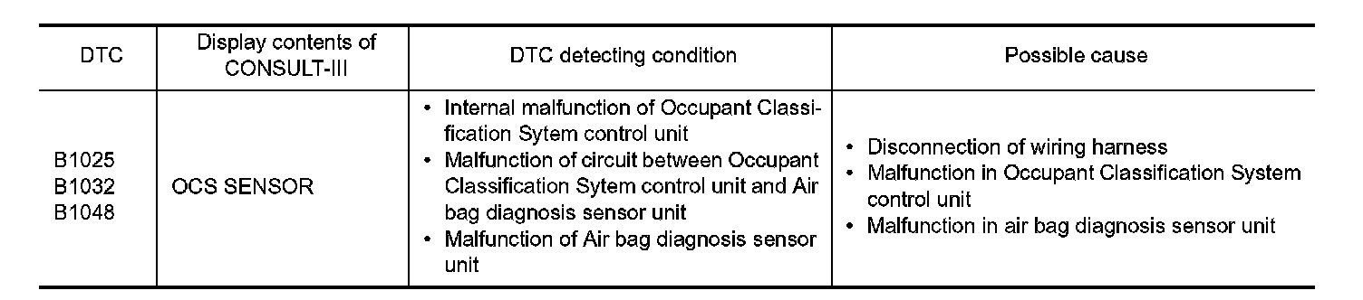 B1025, B1032, B1048 OCCUPANT SYSTEM SENSOR
