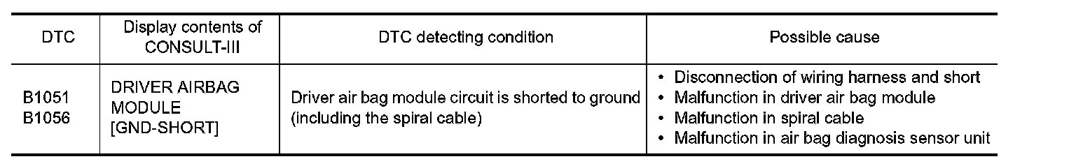 B1051, B1056 DRIVER AIR BAG MODULE
