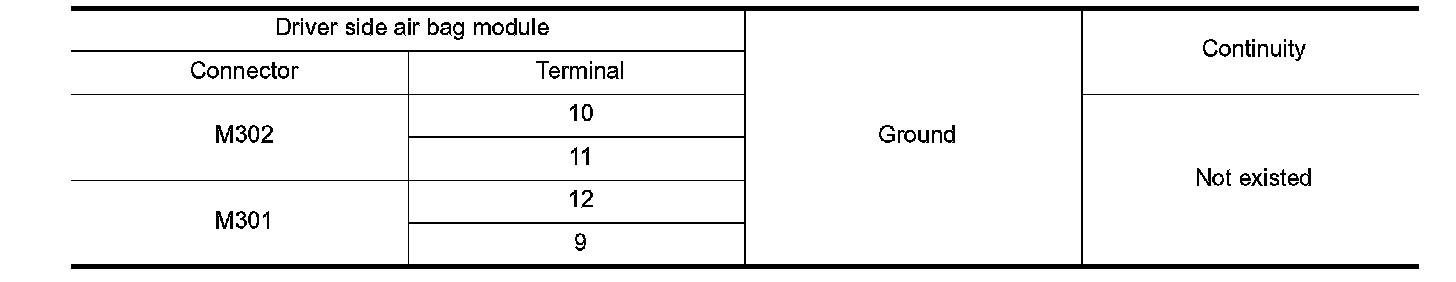 4. Check continuity between driver air bag module harness connector and ground.