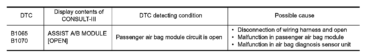 B1065, B1070 PASSENGER AIR BAG MODULE