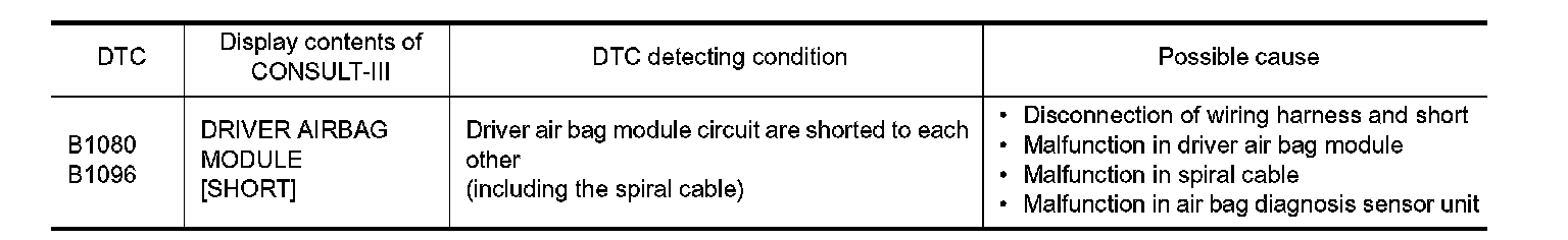 B1080, B1096 DRIVER AIR BAG MODULE