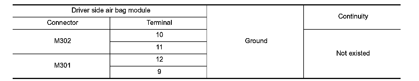 4. Check continuity between driver air bag module harness connector and ground.