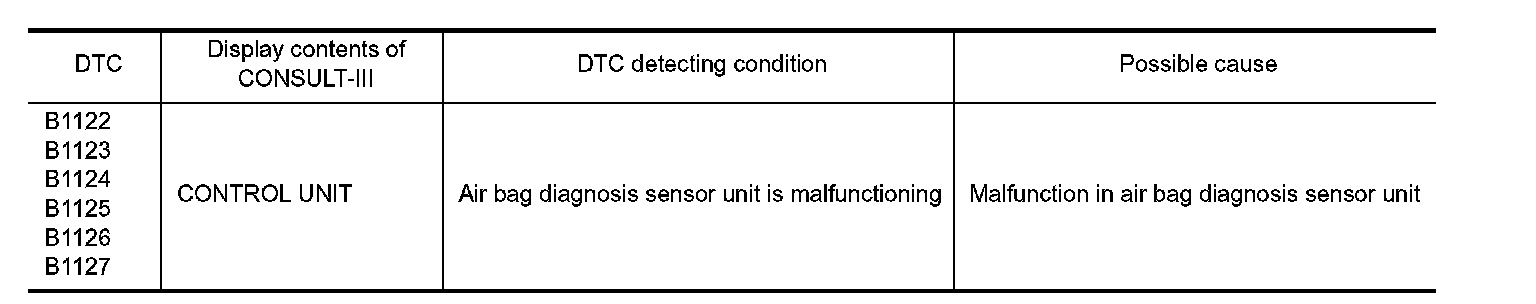 B1122, B1123, B1124, B1125, B1126, B1127 DIAGNOSIS SENSOR UNIT