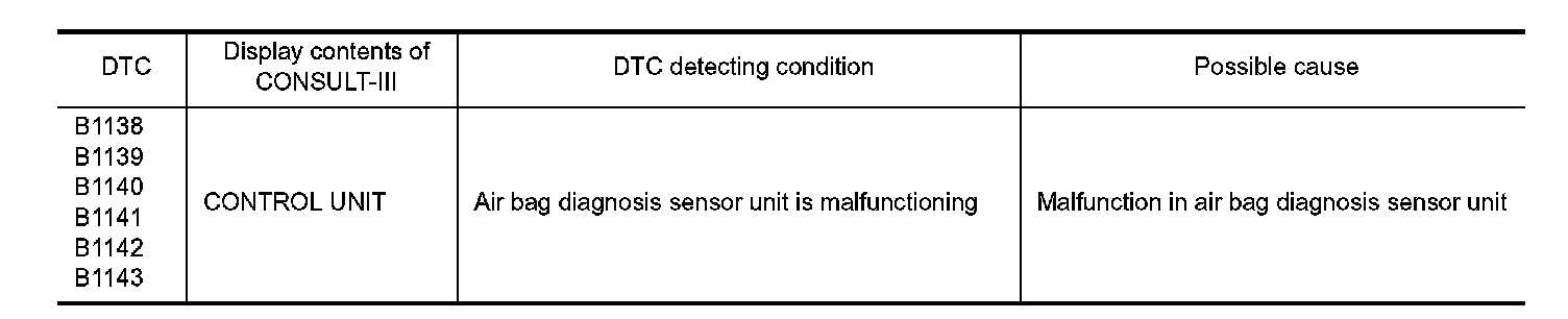 B1138, B1139, B1140, B1141, B1142, B1143 DIAGNOSIS SENSOR UNIT