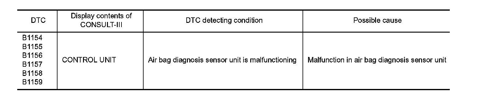 B1154, B1155, B1156, B1157, B1158, B1159 DIAGNOSIS SENSOR UNIT