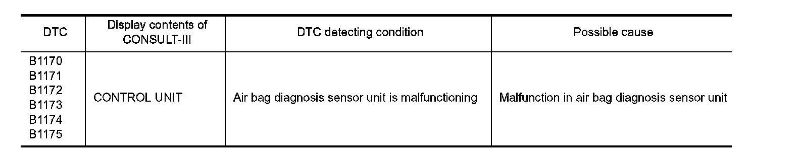 B1170, B1171, B1172, B1173, B1174, B1175 DIAGNOSIS SENSOR UNIT
