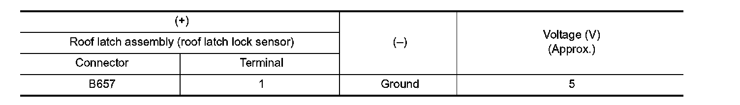 4. Check the voltage between roof latch assembly (roof latch lock sensor) harness connector and ground.
