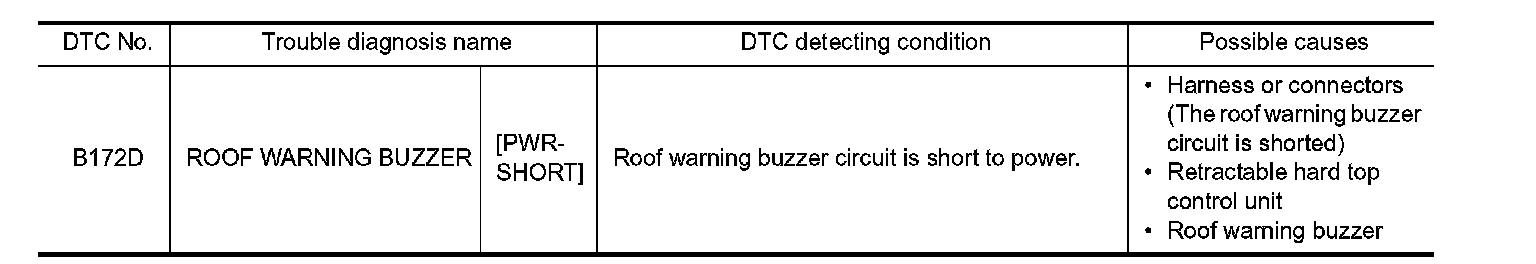 Replace roof warning buzzer. Refer to Retractable Hard Top System.