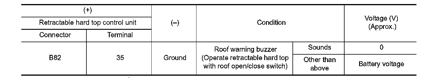 2. Check voltage between retractable hard top control unit harness connector and ground under the following conditions.