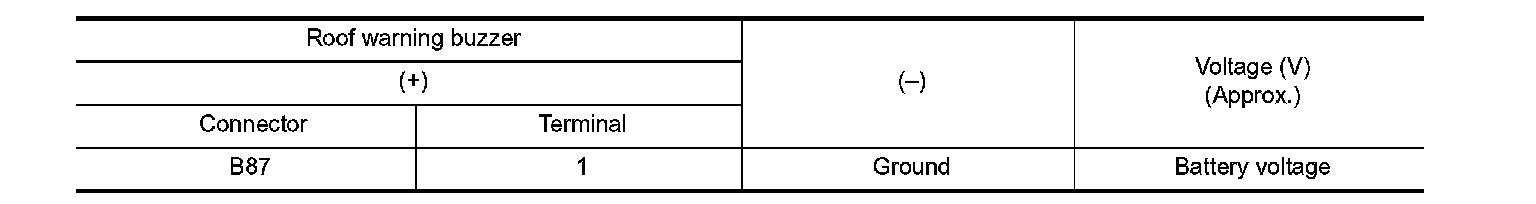 3. Check voltage between roof warning buzzer harness connector and ground.