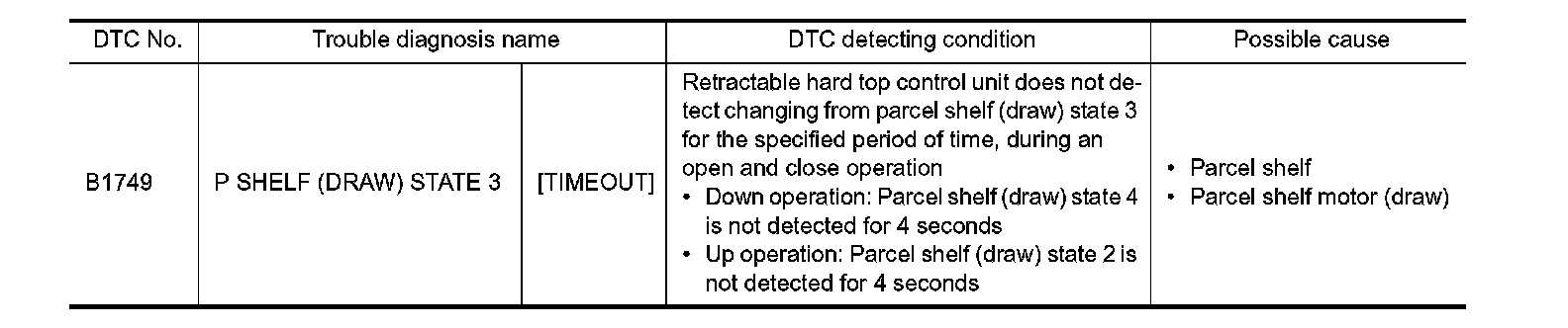 There are 4 rotation operation states and 6 draw operation states in parcel shelf. Open and close operations of retractable hard tops are performed interlocking with other retractable hard top system components. For the detail, refer to System Description.