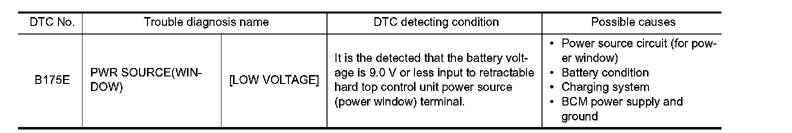 Retractable hard top control unit watches power supply condition of power supply (power window) terminal.