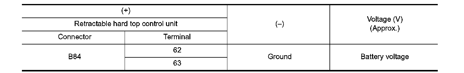 4. Check voltage between retractable hard top control unit harness connector and ground.