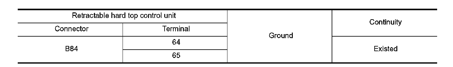 2. Check continuity between retractable hard top control unit harness connector and ground.