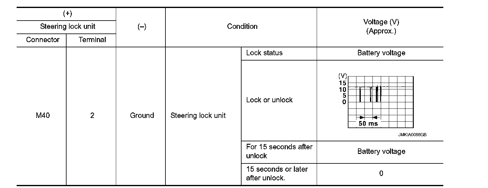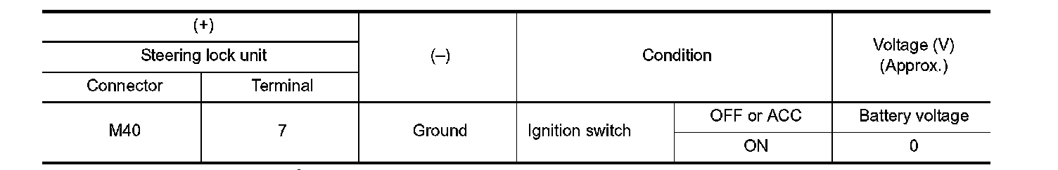 2. Read voltage signal between steering lock unit harness connector and ground.