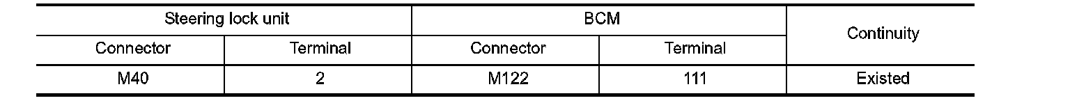 2. Check continuity between steering lock unit harness connector and BCM harness connector.