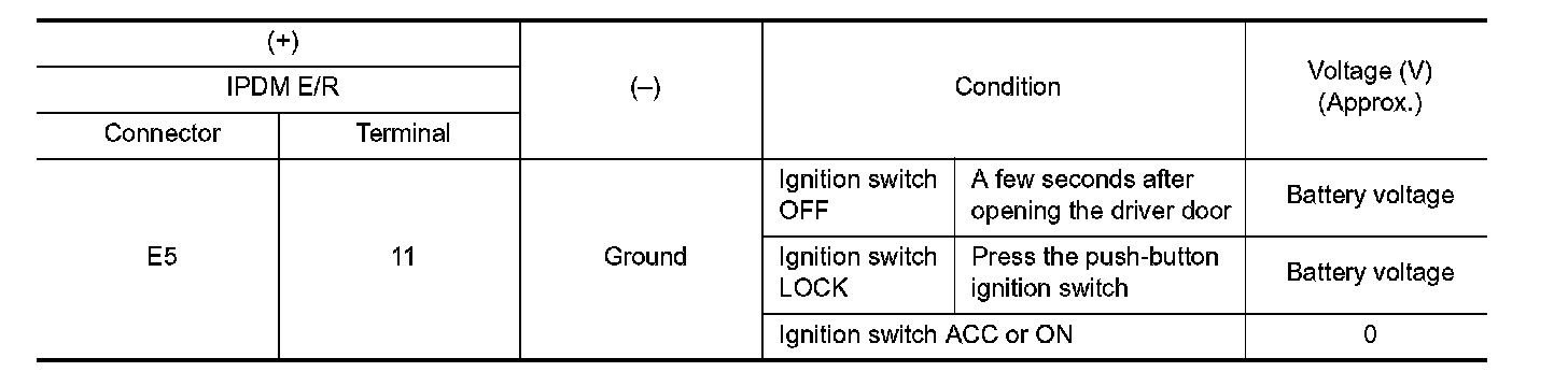 Check voltage between IPDM E/R harness connector and ground.