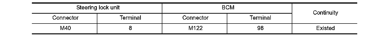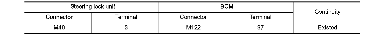 2. Check continuity between steering lock unit harness connector and BCM harness connector.