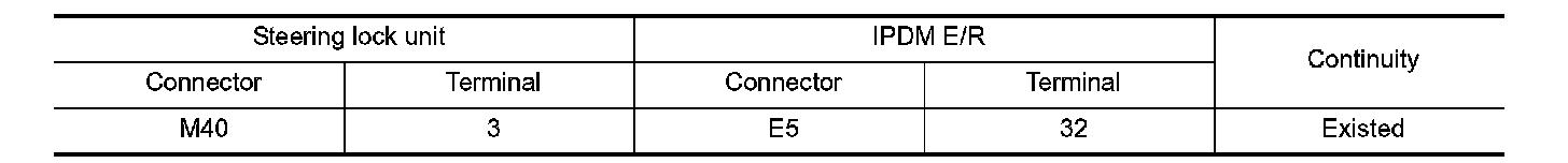 2. Check continuity between steering lock unit harness connector and IPDM E/R harness connector.