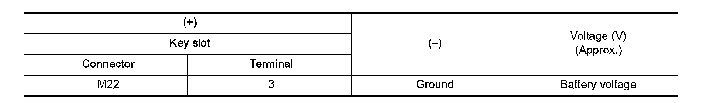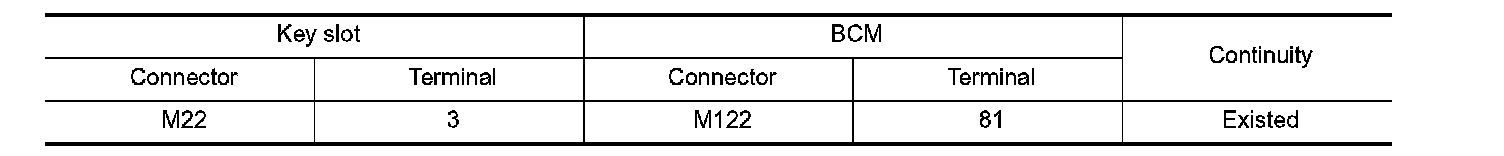 2. Check continuity between key slot harness connector and BCM harness connector.
