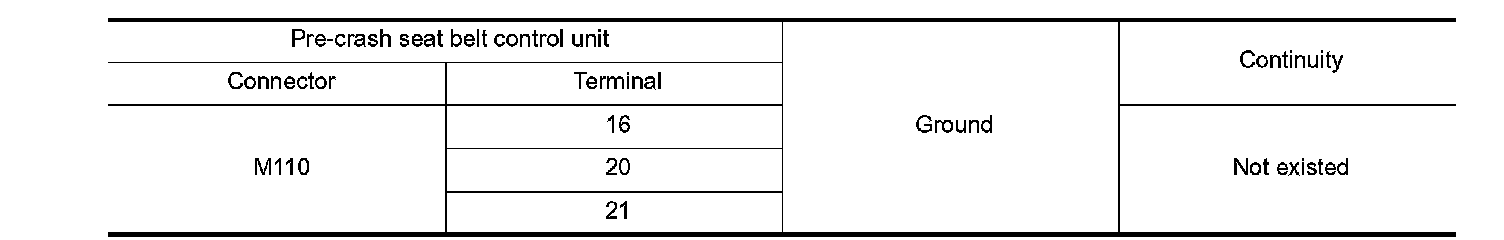 3. Check continuity between pre-crash seat belt control unit and ground.
