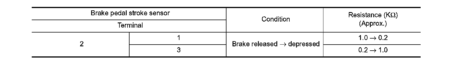 3. Check that continuity between brake pedal stroke sensor when performing the brake operation.