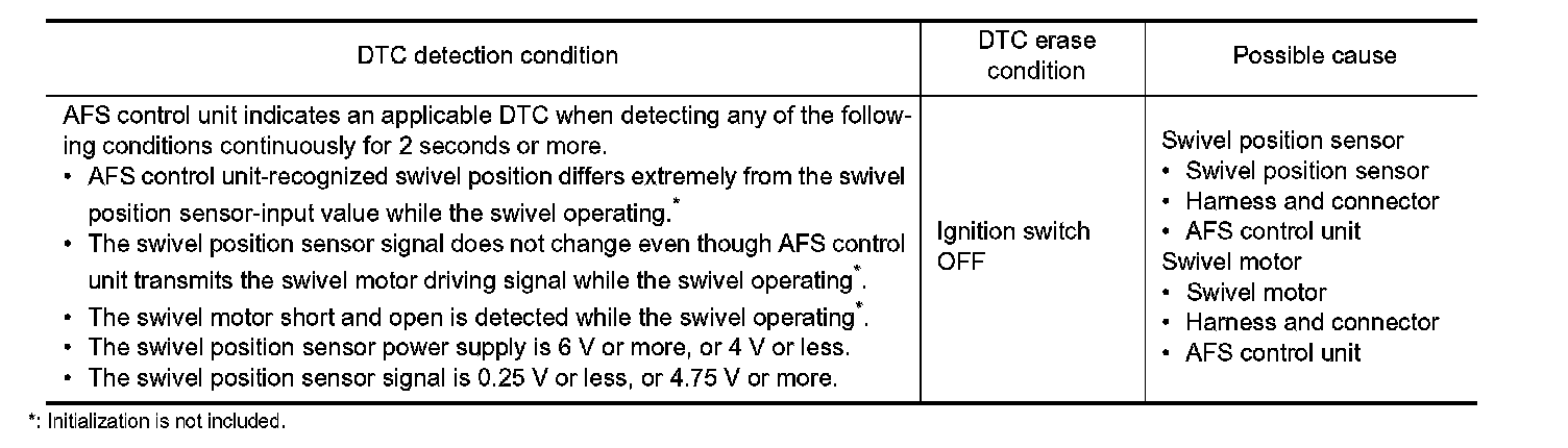 The swivel position sensor detects the headlamp swivel angle to transmit the swivel position sensor signal to