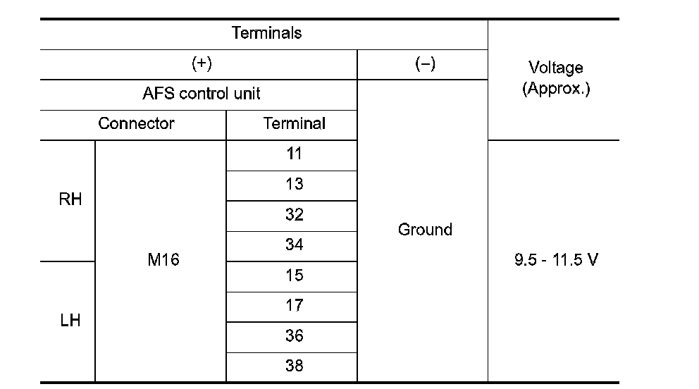 2. Check the voltage between the AFS control unit harness connector and the ground.