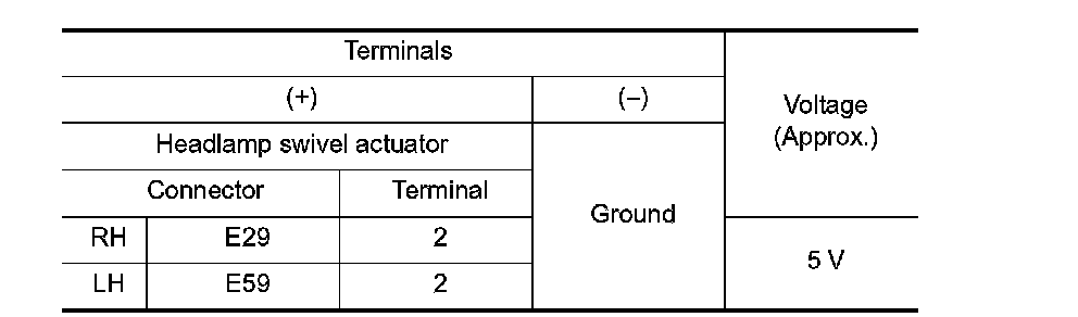4. Check the voltage between the headlamp swivel actuator harness connector and the ground.