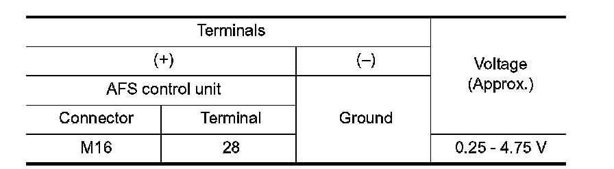 2. Check the voltage between the AFS control unit harness connector and the ground.