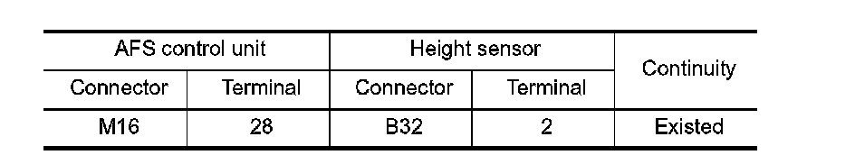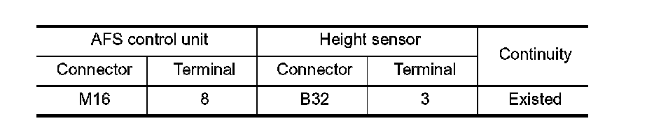 3. Check continuity between the AFS control unit harness connector and the height sensor harness connector.