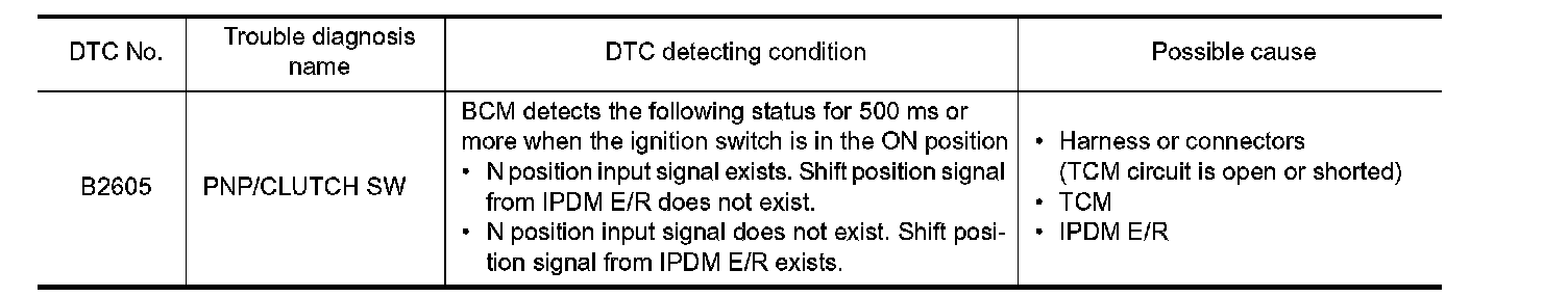 - If DTC B2605 is displayed with DTC U1000, first perform the trouble diagnosis for DTC U1000. Refer to BSC.