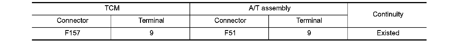 2. Check continuity between TCM harness connector and A/T assembly harness connector.